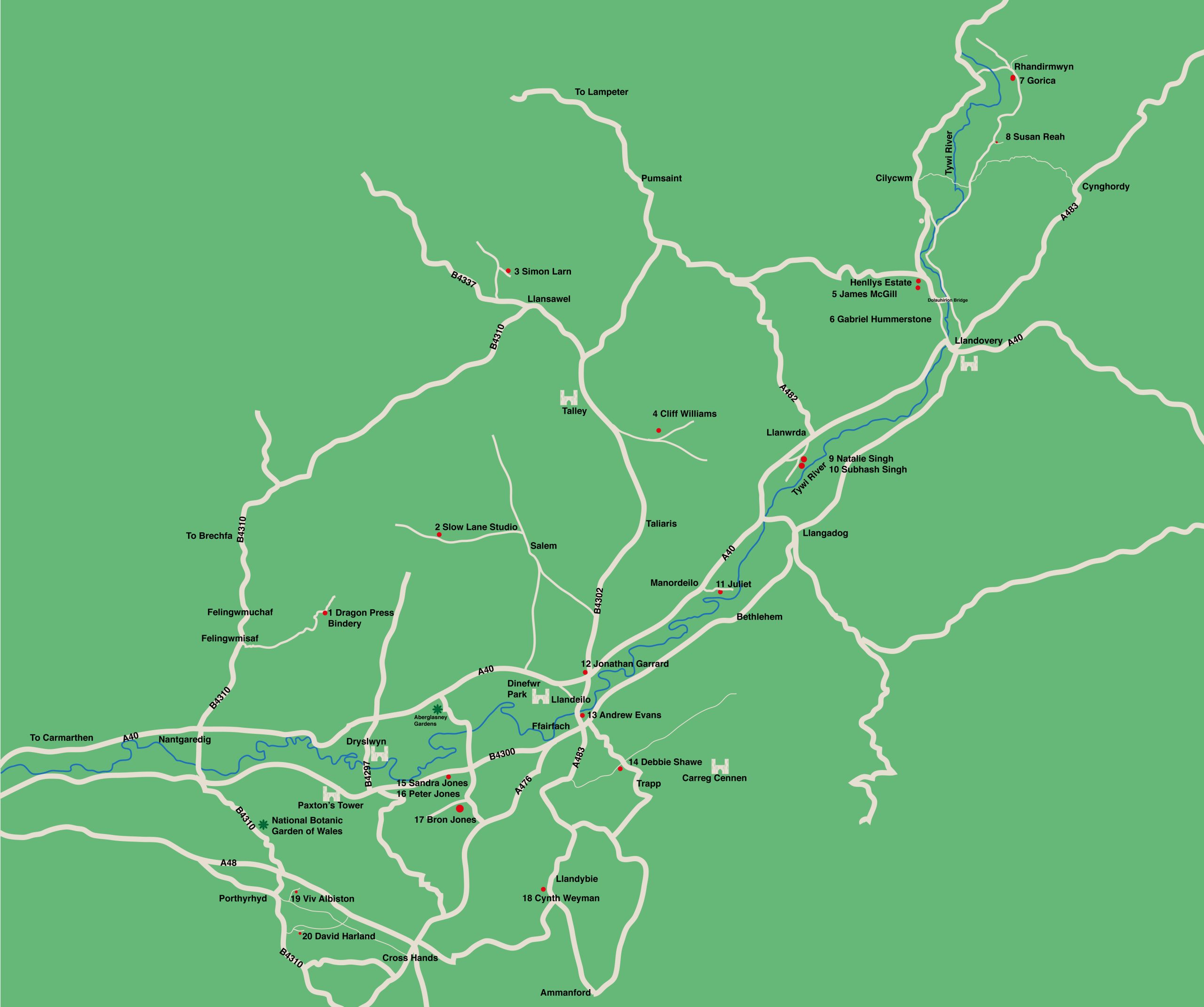 Welcome to the Tywi Valley Open Studios Art Trail – a chance to see artists and makers at work, ask questions, possibly “have a go” yourself and make unique purchases